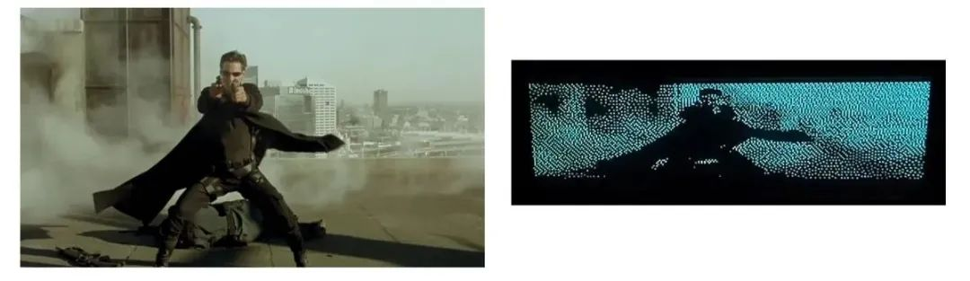 MINT 手动实现了一个用于精确控制帧率的除法循环,使其能稳定输出 24 帧/秒的视频信号。在接入高分辨率 VFD 显示屏后,他还播放了一段《黑客帝国》的片段——虽然是极简像素风,但效果完整,令人震撼。
