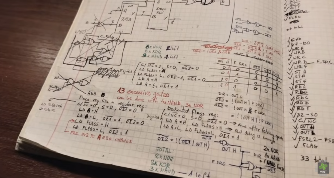 此外,MINT 表示,「ALU 也不只支持加减,甚至可以做乘法、除法、对数、三角函数等。这是我刻意扩展的功能——毕竟 Z80 没有这些。我一边测试一边优化,有时会删掉原本的设计,加入更好的思路。」