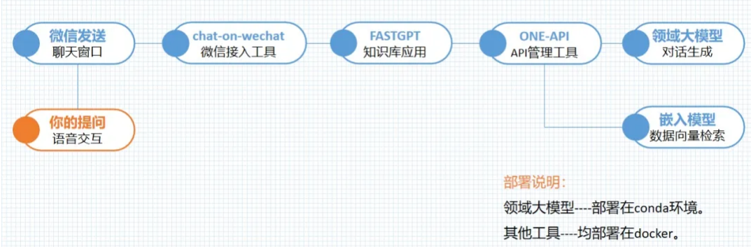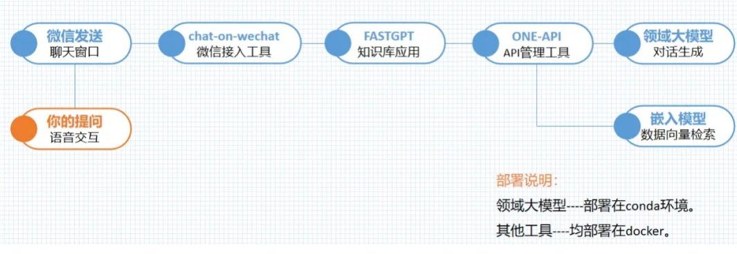 ①微信/飞书接入、②API管理、③数据集预处理、④大模型选择及调优、⑤知识库搭建**